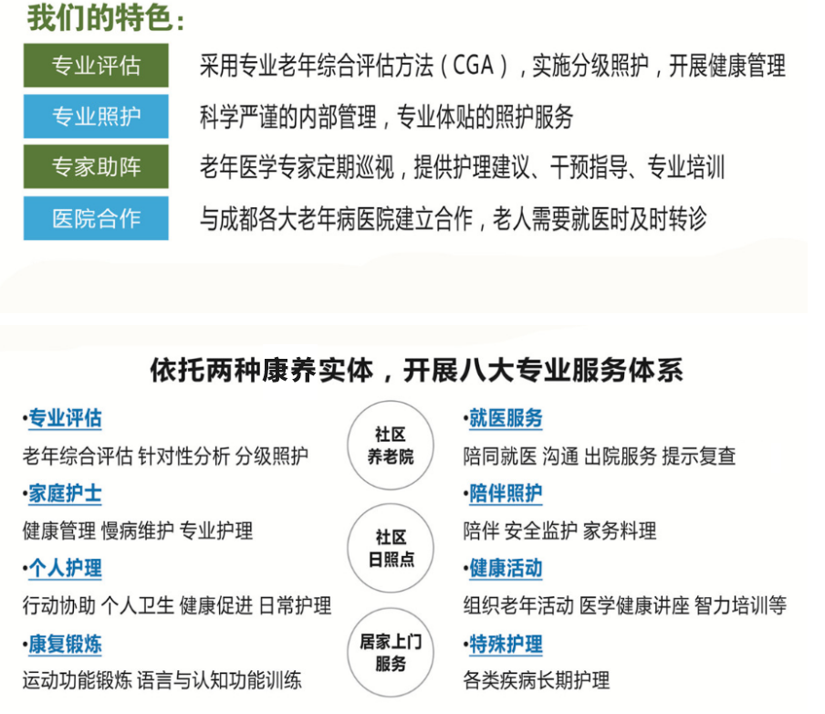 成都怡倍康養(yǎng)老服務(wù)有限公司是一家按照“康養(yǎng)結(jié)合”模式運(yùn)營的專業(yè)化養(yǎng)老機(jī)構(gòu)。我們與四川大學(xué)華西醫(yī)院老年醫(yī)學(xué)中心合作,專注于社區(qū)養(yǎng)老,并在實踐中堅持關(guān)注老年人身心健康。